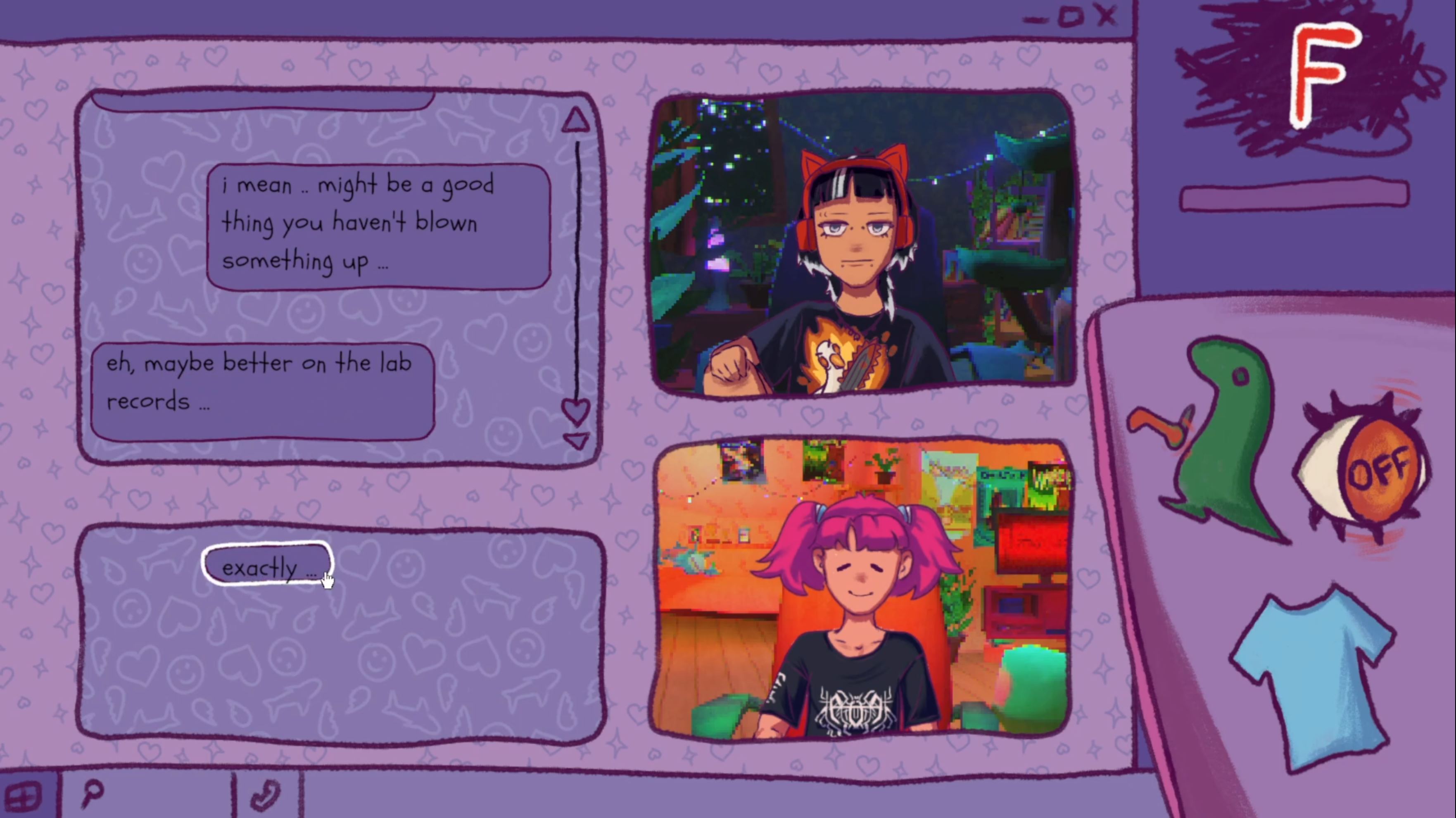 Girl!Panic!!! is a love-letter to fumbling nerds and their queer crushes, told through the experience of going on a date. You play as a nerdy girl, who realizes she has 5 minutes to prepare for an online date, so: clean-up the cans, put on your best outfit and prepare for what could be the most awkward or most amazing date of your life!